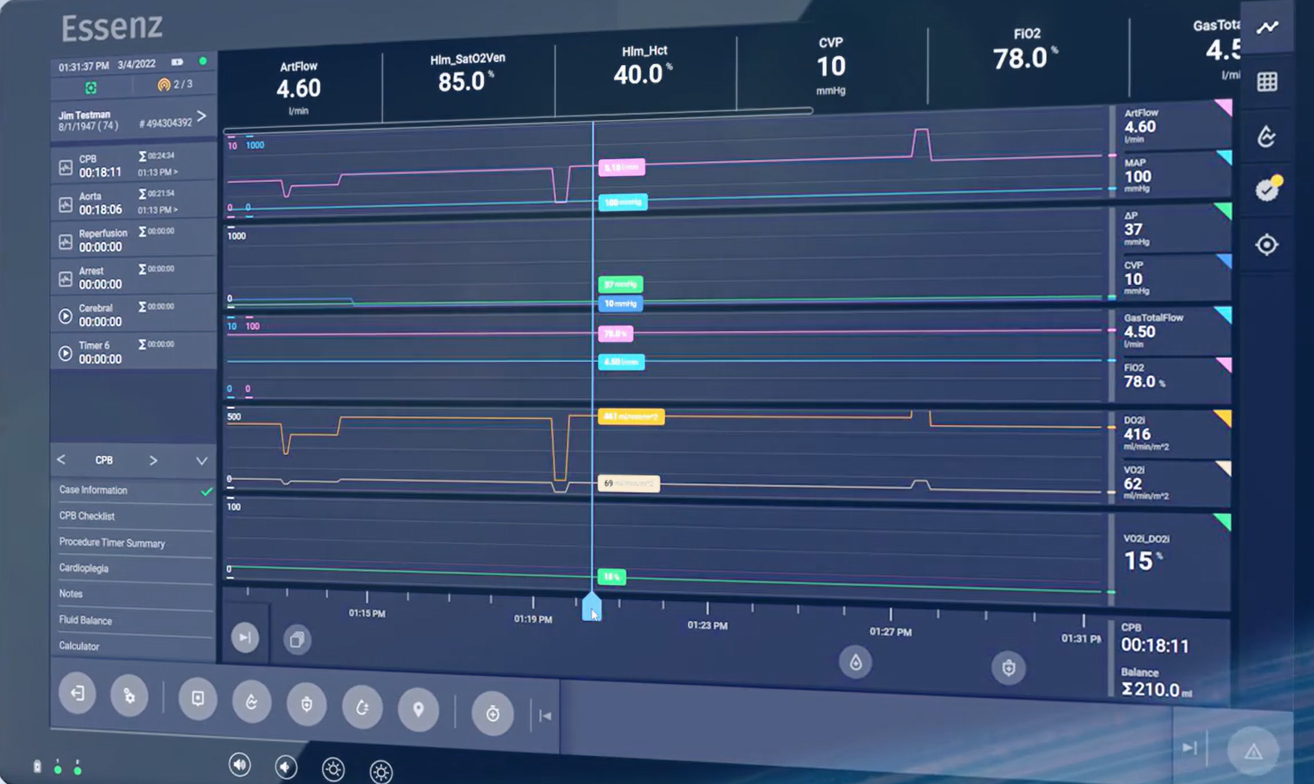 Az Essenz betegmonitor a perfúziós adatokat egyetlen képernyőn jeleníti meg, így az orvos és a kardiotechnikus teljes mértékben a betegre és a CPB-kör kezelésére koncentrálhat. Az Essenz betegmonitor az Essenz perfúziós rendszer része. Az Essenz betegmonitoron található speciális perfúziós szoftver az S5 szív-tüdő-motorokkal is kompatibilis.
