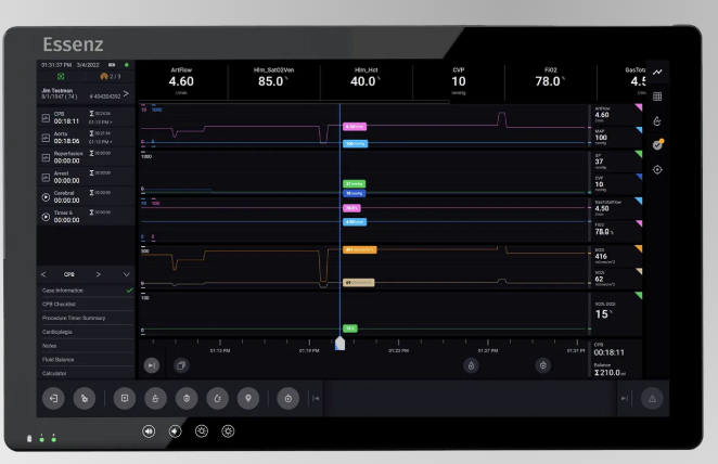 Az Essenz betegmonitor a perfúziós adatokat egyetlen képernyőn jeleníti meg, így az orvos és a kardiotechnikus teljes mértékben a betegre és a CPB-kör kezelésére koncentrálhat. Az Essenz betegmonitor az Essenz perfúziós rendszer része. Az Essenz betegmonitoron található speciális perfúziós szoftver az S5 szív-tüdő-motorokkal is kompatibilis.